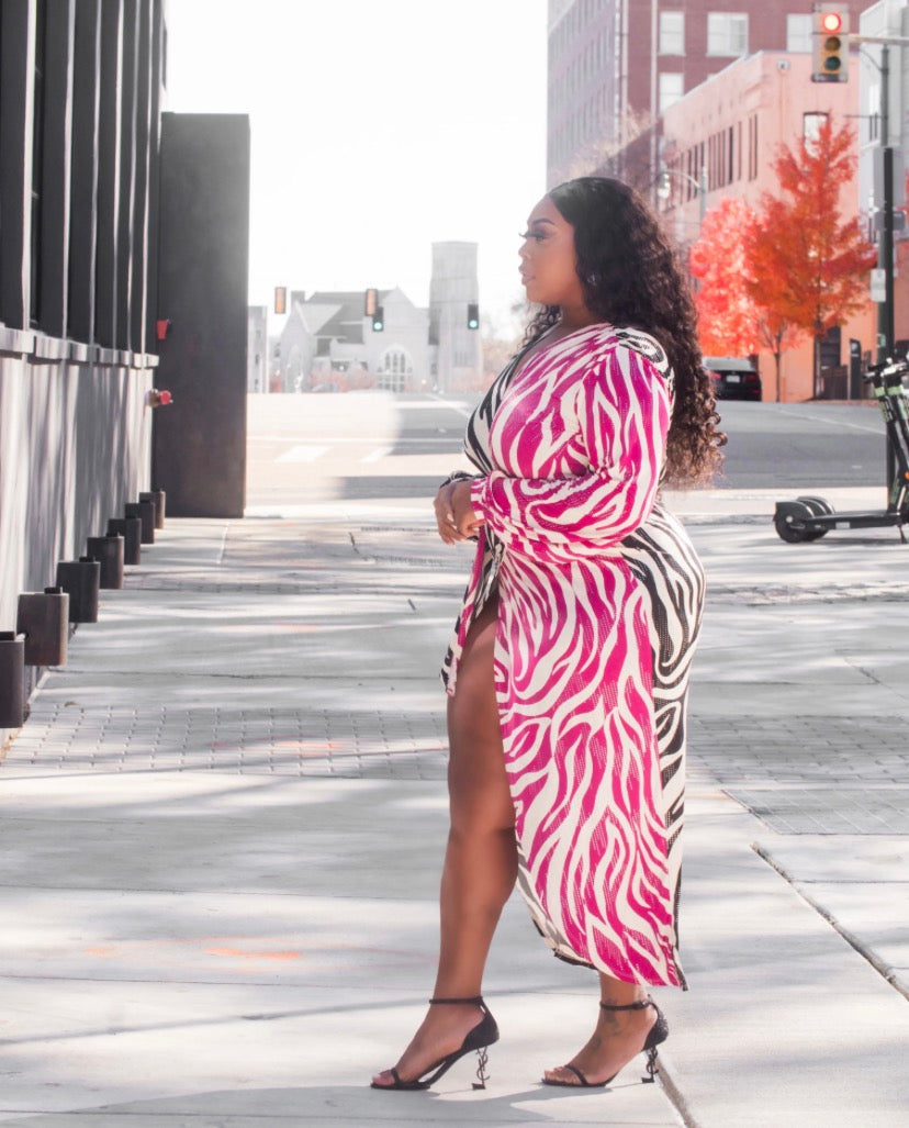 *Sequined wrapped zebra print dress